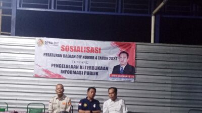 MCI – Gunungkidul, DIY |Dewan Perwakilan Rakyat Daerah (DPRD) Daerah Istimewa Yogyakarta (DIY) menggelar kegiatan sosialisasi Peraturan Daerah (Perda) DIY Nomor 4 Tahun 2021 tentang Pengelolaan Keterbukaan Informasi Publik.