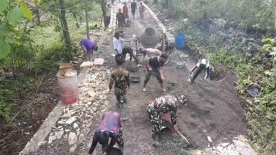 MCI – Gunungkidul, DIY | Semangat gotong royong terus berkobar di Kalurahan Candirejo, Kapanewon Semin, Kabupaten Gunungkidul. Satuan Tugas (Satgas) TNI Manunggal Membangun Desa (TMMD) Reguler ke-126 Kodim 0730/Gunungkidul kini tengah berpacu dengan waktu menuntaskan pengecoran rabat jalan yang menjadi salah satu sasaran fisik utama program tersebut. Pengerjaan ini dikebut agar rampung sesuai target pada akhir masa pelaksanaan TMMD.