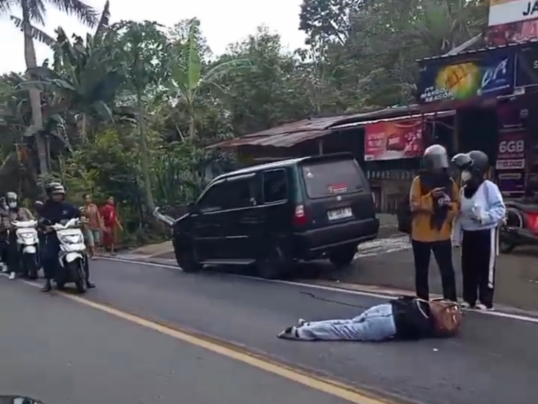 Benturan keras membuat korban terjatuh dan terkapar di aspal, dengan luka serius di beberapa bagian tubuh. Petugas yang datang ke lokasi segera melakukan evakuasi dan membawa korban ke rumah sakit.