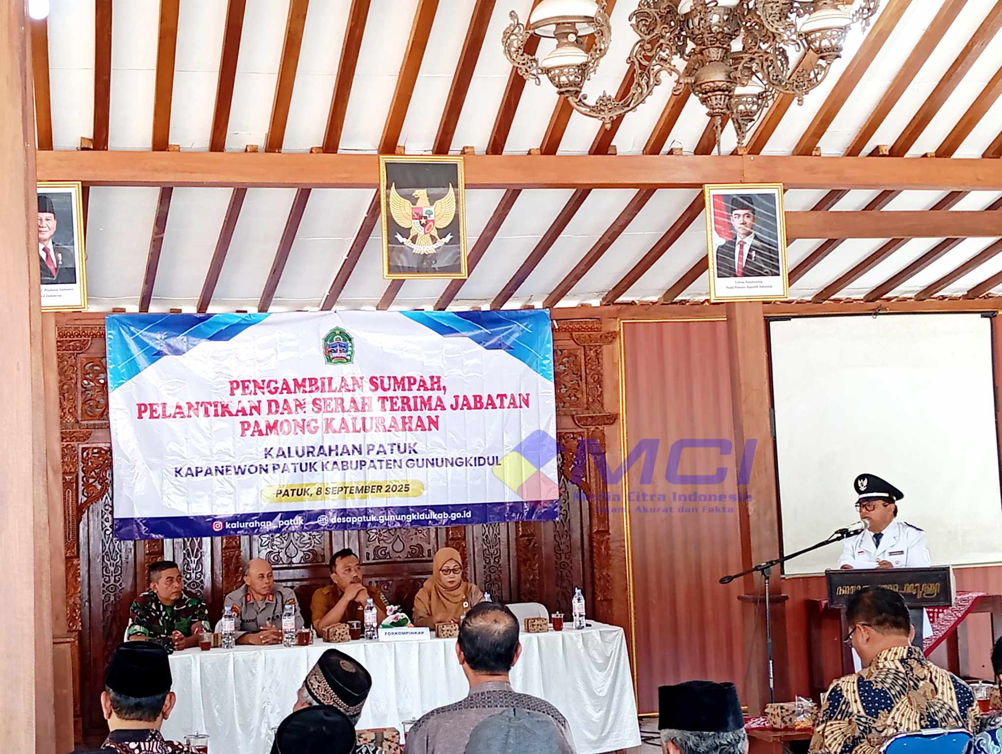 MCI – Gunungkidul, DIY | Suasana khidmat menyelimuti Pendopo Kalurahan Patuk pada Senin (08/09/2025) siang, saat Lurah Patuk, Catur Bowo, secara resmi melantik dan mengambil sumpah tiga pamong baru hasil seleksi terbuka.