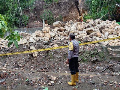 Saksi mata, Wastino (39) dan Kahono (46), warga setempat, mengatakan tebing runtuh dengan suara keras akibat intensitas hujan tinggi. Polisi telah mendata lokasi dan memantau situasi untuk memastikan keamanan tetap terjaga.